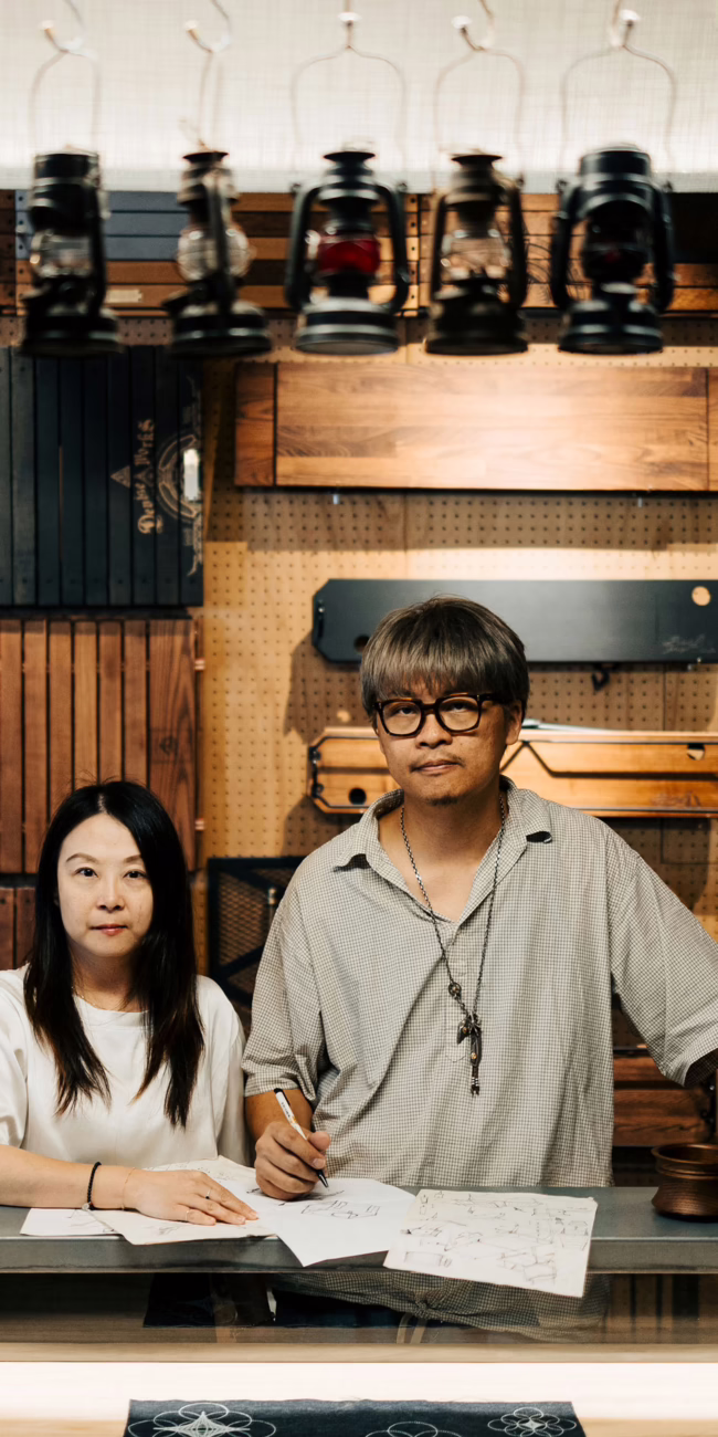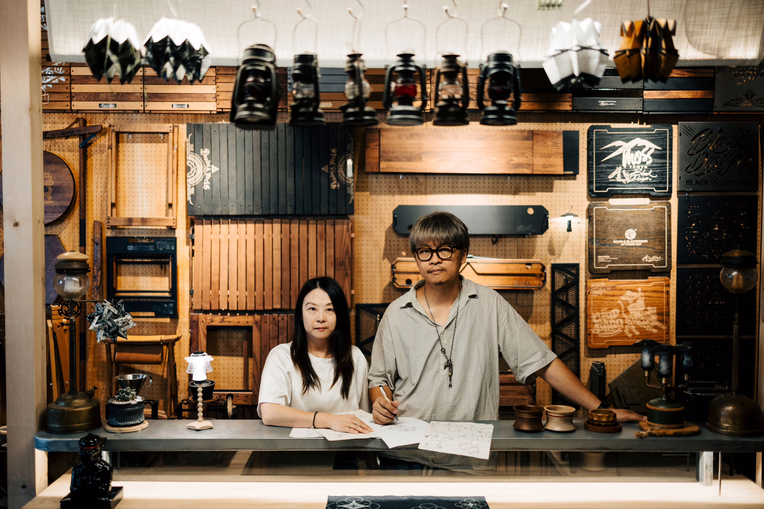 對Black與 Alice 而言,臺中不只是成長的地方,更是品牌的根基。他們在這座城市出生、生活到創業,也在這裡建立屬於自己的節奏。Alice 出生於北屯,曾任教補教業二十年,如今投入品牌行政與專案規劃;Black則來自水湳,念工業設計出身,早期協助家族從事鋁壓鑄與模具產業,後來將工藝與設計結合,創立了BLACK Design,一個從山林生活延伸出的戶外傢具品牌。