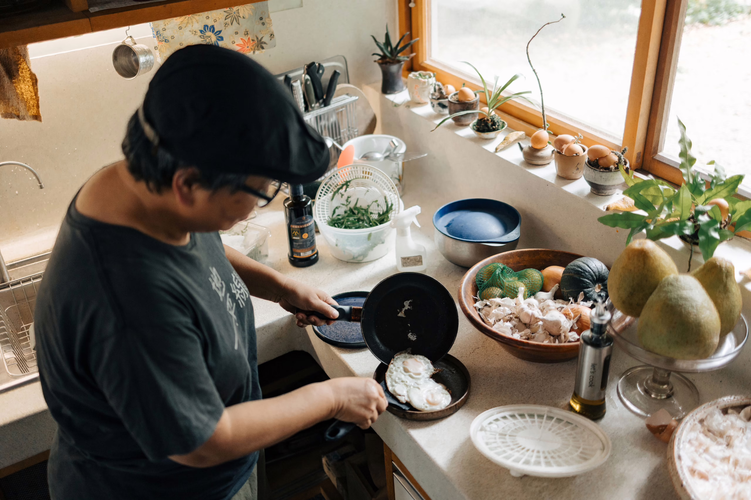 如今,她將生活基地移到南投草屯。那裡的家由學長趙力行建築師設計,是三戶獨立、又共享庭院的共居聚落。「我們之間沒有圍牆,彼此互信、互助,就是我們這個社群的基礎。」她笑著說,「房子不只是建築物,而是人與人的關係延伸。」家中有三隻貓、兩隻狗,如家人般的暖心陪伴,生活節奏緩慢而充滿呼吸;她喜歡親自下廚、邀請朋友共食,「食材新鮮、烹調簡單就很好吃,生活本來就該這樣單純。」